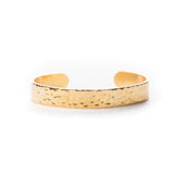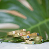 Enhanced by a pair of semi-precious stones, this hammered cuff is crafted in France from golden-plated brass.