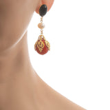 CIRINE earrings with fresh water pearl and red drop