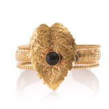 This delicate ring tipped with a small leave, will add a subtle touch of sophistication to any look.
