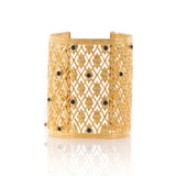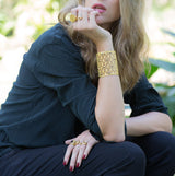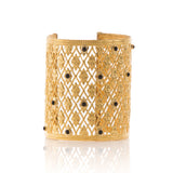 Made of a delicate stamping work, this one-of-a-kind cuff dares to be a statement.
