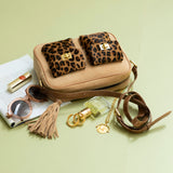 Inspired by classic camera cases, this ultra-light zip-around cam bag is spacious enough for everyday use. Crafted from smooth suede and luxurious snake skin, the style features two extra pockets in leopard printed calf for a chic and functional feel. Wear it from day-to-night with ease.