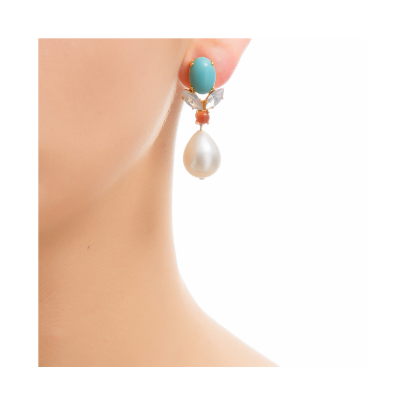 GRACE Earring Swarovski Crystal Turquoise and Pearl