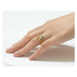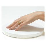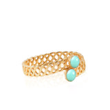 This delicate ring tipped with a double cabochon , will add a subtle touch of sophistication to any look.