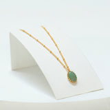 A delicate cabochon pendant is a timeless addition to any outfit.