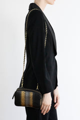 From a day spent shopping to an evening out, this belt and crossbody bag offers two options, tight it around your waist for hands-free experience or wear it across the body for a sophisticated look. Crafted from smooth calf suede and exotic cobra skin with golden hardware, this belt bag is a stylish addition to any attire.